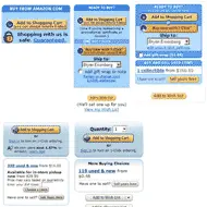 I'm just seeing for the first time Bryan Eisenberg's GrokDotCom article from Feb 2008 on the evolution of Amazon's shopping cart. It's a great article that makes observations about Amazon's tweaking and testing of their shopping cart buttons over the years. I put all of his screenshots together in the image above.