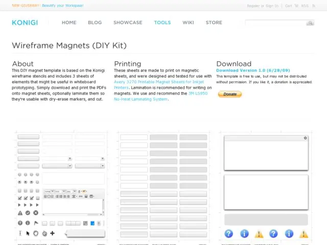 The Konigi DIY Wireframe Magnet Kit is based on the wireframe stencils and includes 3 sheets of elements that might be useful in whiteboard prototyping. Simply download and print the PDFs onto magnet sheets. They were designed and tested for use with Avery 3270 Printable Magnet Sheets for Inkjet Printers. Lamination is also recommended so they're usable with dry-erase markers. Enjoy!