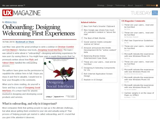 Whitney Hess has published the sidebar on Onboarding from the Designing Social Interfaces book by Erin Malone and Christian Crumlish, as a featured article on UX Mag. Whitney's article describes how to use onboarding to get users from sign up, to becoming oriented with your site and actually using it.
