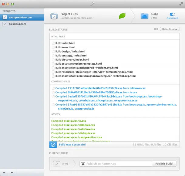 Anyhow, that made for an exciting day last week. It's energizing to feel frustrated by something and quickly turn something around that's better. And for anyone that's doing UX work that's looking for a decent HTML prototyping workflow and knows enough SASS and JS, Hammer may be the thing for you.
