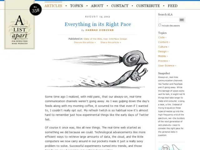 - Everything in its Right Pace This is a terrific essay on considering the pace of delivery of information in web products, and how in a world of constant delivery, sometimes a slower pace, selective or scant data delivery, and better signal to noise is more appropriate and valuable in a given context.