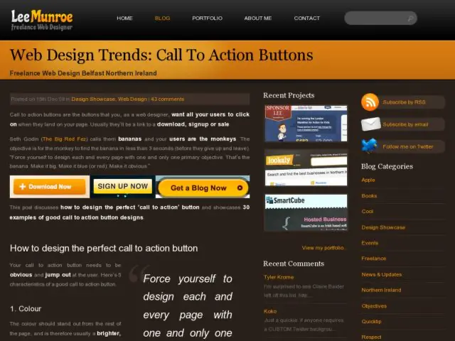 Lee Munroe has collected a slew of examples of Signup and Download call to action buttons that exemplify good CTA button design. He has 4 criteria for designing a good call to action button, involving the appropriate use of color, language, size, and white space around the button.