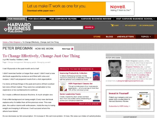 http://blogs.harvardbusiness.org/bregman/2009/10/i-lost-18-pounds-in.html