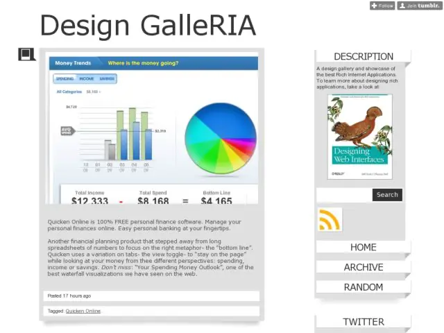 Theresa Neil has started a Tumblog design gallery and showcase of Rich Internet Applications. http://designgalleria.tumblr.com/