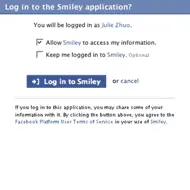 When a user goes to an application for the first time and is prompted to log in, she will see a simpler screen, like in the screen shot here. Once a user authorizes your application, you can utilize all the API methods that access information about the user, publish stories to News Feed and Mini-Feed, and send the user notifications.