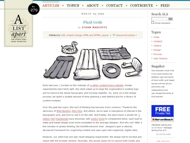 In the latest A List Apart, Airbag Industries' Ethan Marcotte writes about designing fluid grids, rather than using the fixed pixel methods provided by most CSS layout frameworks. Marcotte describes that the technique of calculating percentages for column widths is the same method we use for calculating font sizes in ems.
