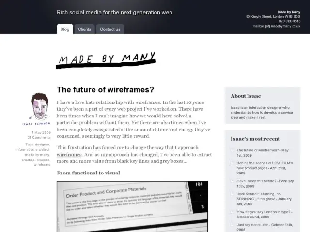 On Made By Many, Isaac Pinnock looks back at his 10 year history using wireframes and their evolution in IA practice from time consuming deliverable in functional specifications, to disposable artifacts of the design process. The notion that highly visual wireframes should be part of the design process resonates with me.