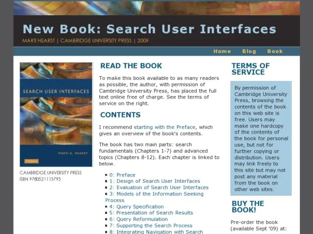 Marti Hearst and Cambridge University Press have made the Search User Interfaces book available for free online. About the book: