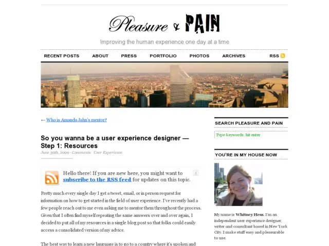 http://whitneyhess.com/blog/2009/06/so-you-wanna-be-a-user-experience-designer-step-1-resources/