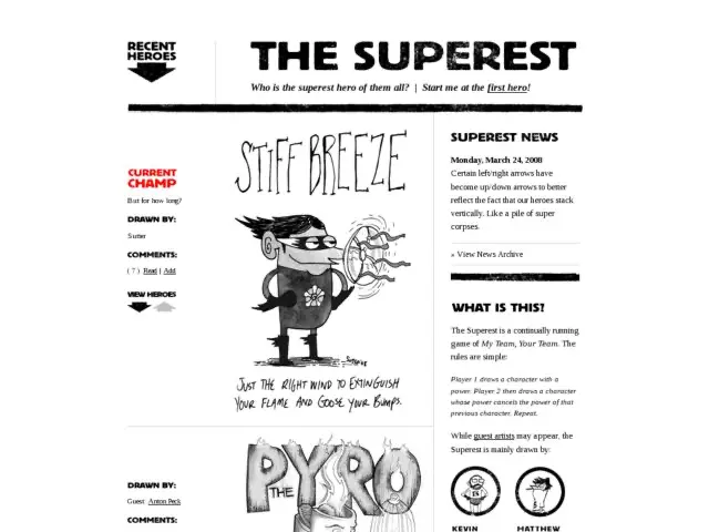 I absolutely love the idea The Superest, a game/blog that features drawings of superheroes.