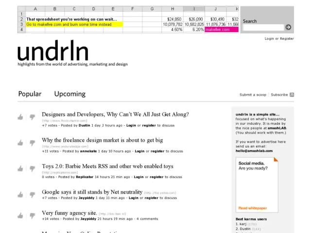 underln is a really simple vote to promote site by smashLAB to scoop any topic or site related to the fields of advertising, marketing, and design. Only 2 inputs: title and URL, and only Title is required.