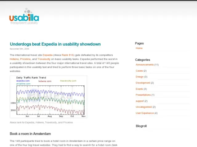 Usabilla was ran usability tests to compare the usability of four travel sites and has posted the results. Their analysis concludes that Expedia gets defeated by its competitors Hotwire, Priceline, and Travelocity on basic usability tasks. Expedia performed the worst in a usability showdown between the four major international travel sites. A total of 148 people participated in this usability test and tried to perform three basic tasks on one of the four websites.