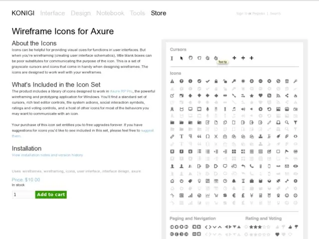 Thanks to the great feedback from a few new readers and colleagues, and with a little help from Axure, the Konigi Store now offers the wireframe icons for Axure RP Pro. This is the same set of icons offered in the OmniGraffle stencil, formatted as an Axure library that you can import into your widgets panel. As with the OG set, this is priced at a super low $10 with lifetime upgrades. Happy wireframing. :)
