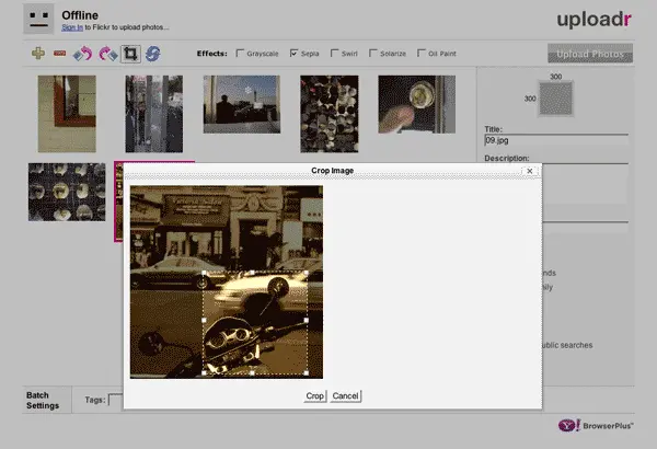 The site is showing very cool demos right now including dragging and dropping photos from the desktop to a web browser, live image manipulation, and live refreshing IRC chatrooms in the browser. One of the nice things about how this is implemented is that when you've arrived at a site requiring BrowserPlus, the software is installed in your browser and does not require a restart.