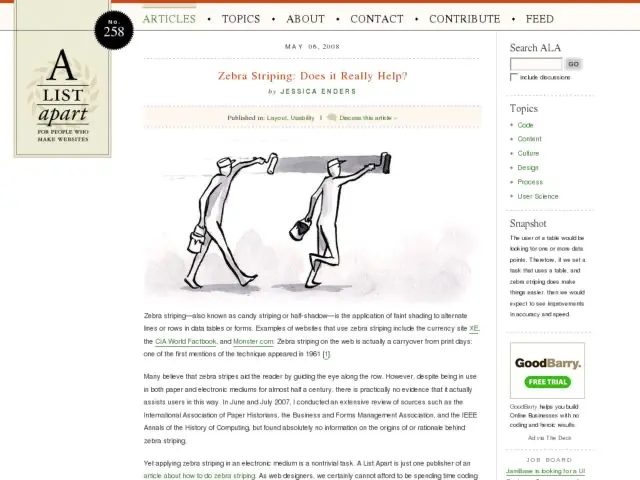 The conclusions in this A List Apart article about zebra striping, the method of using alternating row colors in tables, strike me as odd. My first reaction to the article was, "Why do you need to study the usability of that technique?" I wonder if the issue isn't so much a question of usability, but rather of aesthetic sensibility. Bad table row style without zebra striping can adversely affect readability as much as good zebra striping or horizontal rule style.