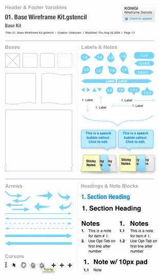 Includes Base Wireframe Kit; Controls Audio and Video; Controls Basic; Forms; Navigation; Text; Windows, Dialogs and Layers.