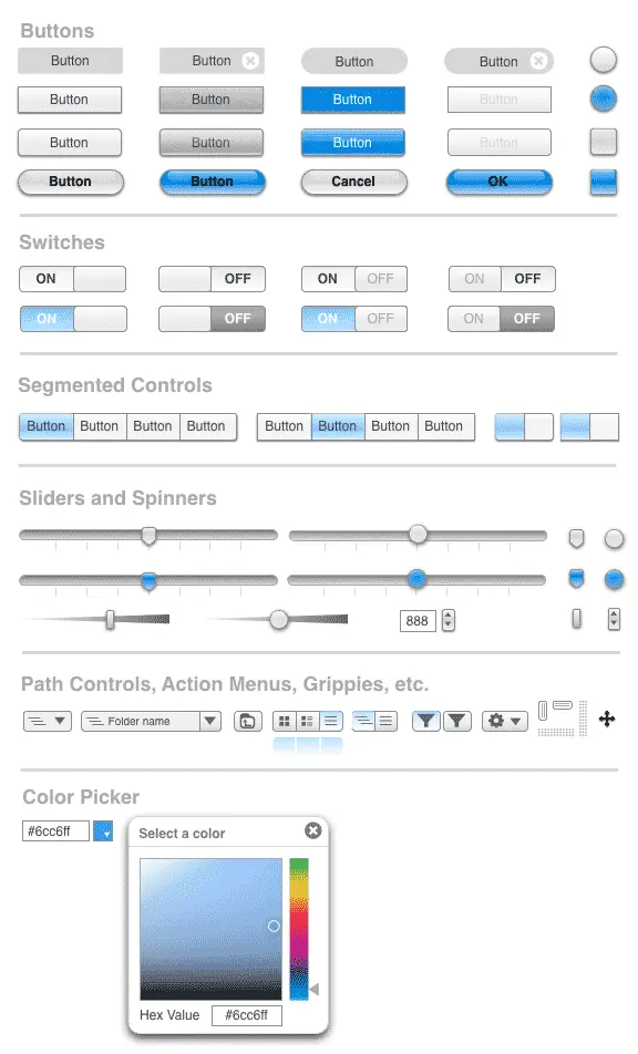 This is a set of shapes for making wireframe in OmniGraffle 5 Pro or OmniGraffle 6 (Mac OS X). It consists of most of the basic elements you'll need to create user interface specifications.
