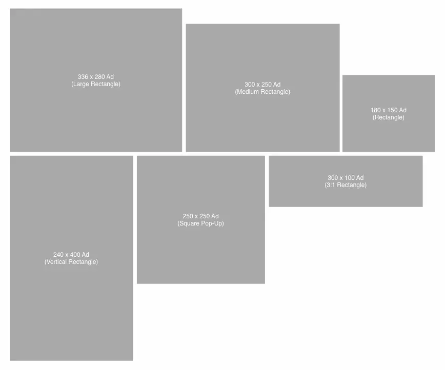 Standard IAB advertising unit dimensions for use in wireframes and mockups.